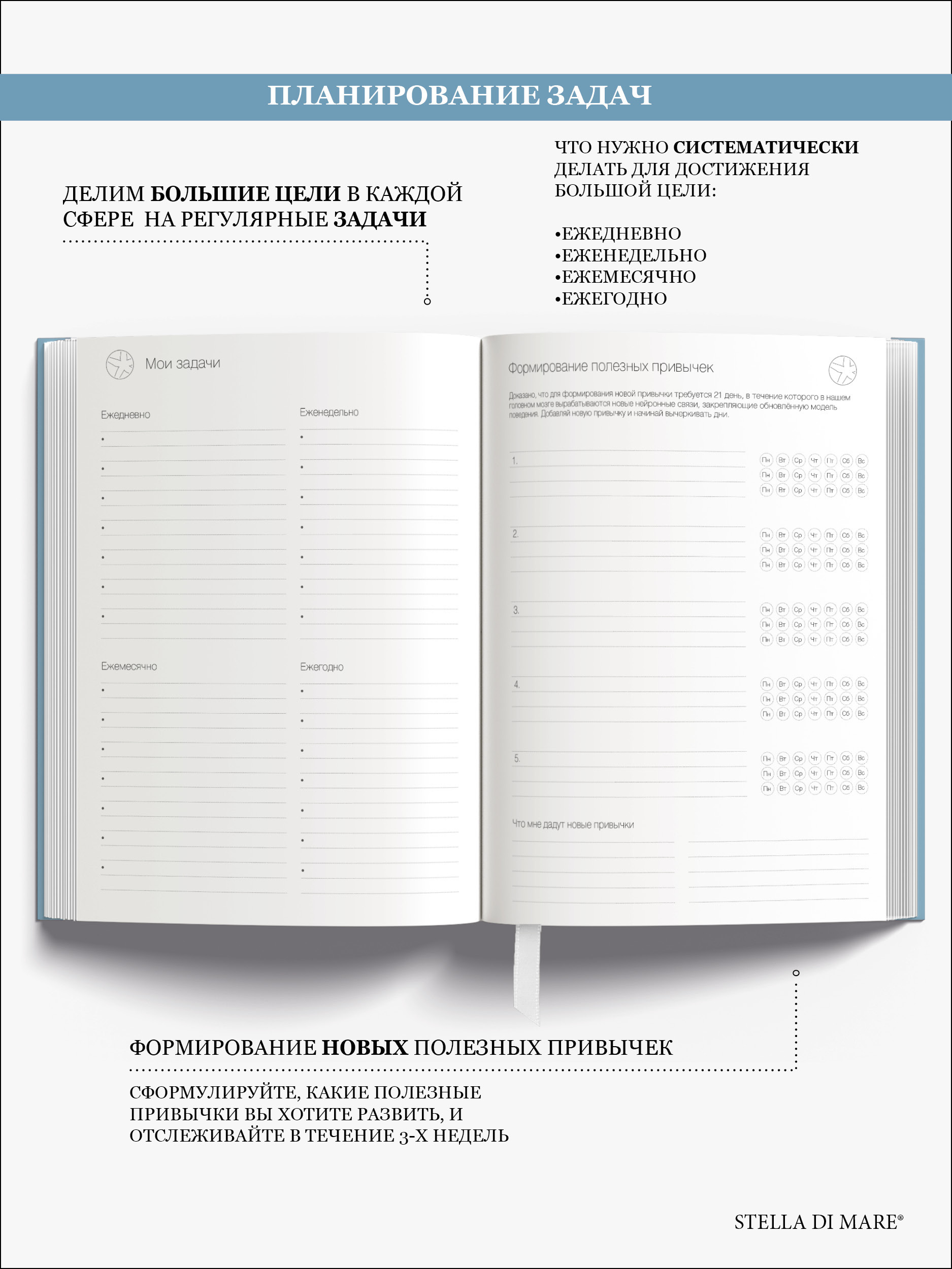 Ежедневник рассчитан на 1 год, собран вручную. В производстве продукта использованы лучшие материалы, представленные на рынке современной полиграфии.