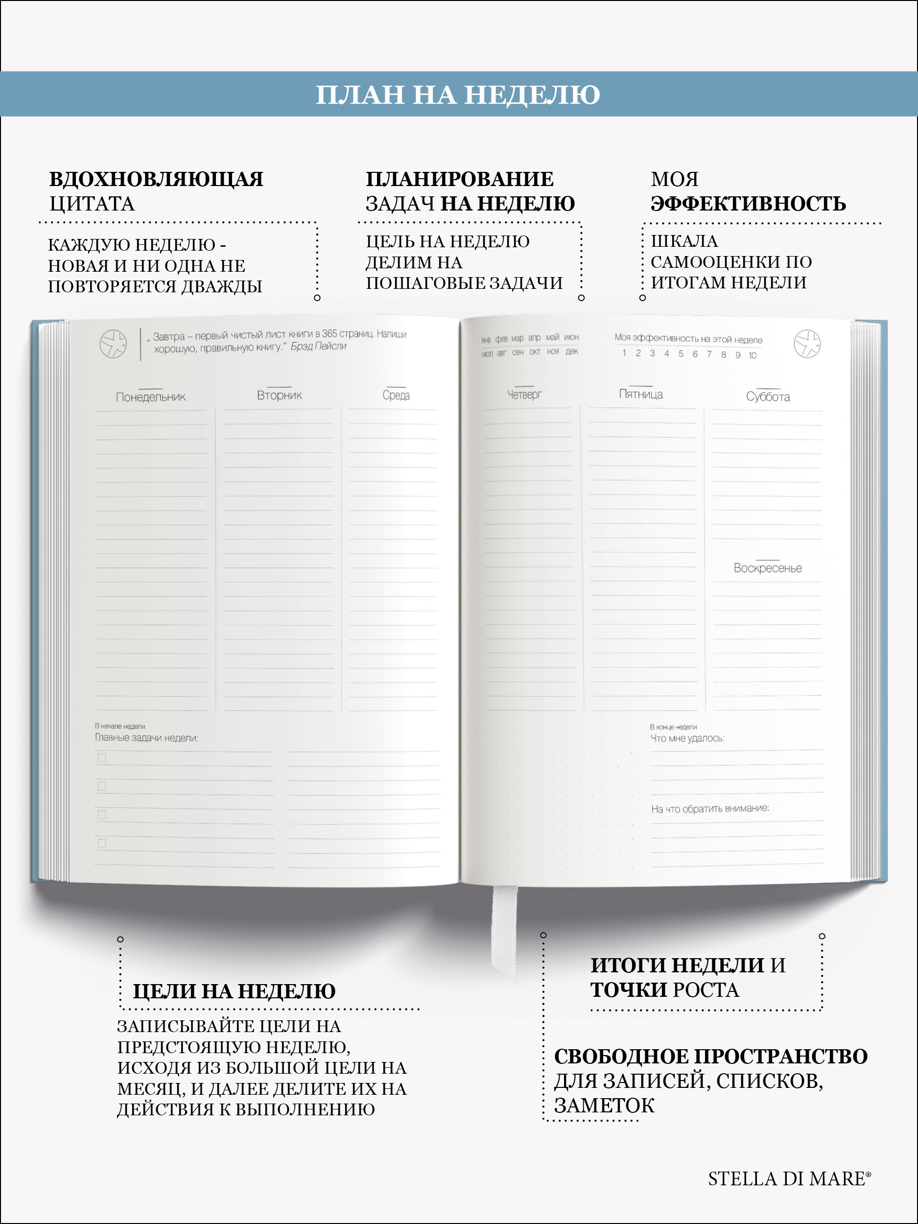 Недатированный ежедневник Stella Classic Pure в твердом переплёте в издании 8.0 с обновленным внутренним блоком. Ежедневник рассчитан на 1 год, собран вручную. В производстве продукта использованы лучшие материалы, представленные на рынке современной полиграфии.