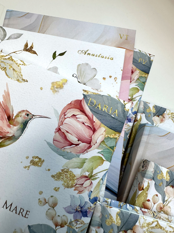 - 6 двусторонних фигурных карточек с нежнейшей шелковой ламинацией;