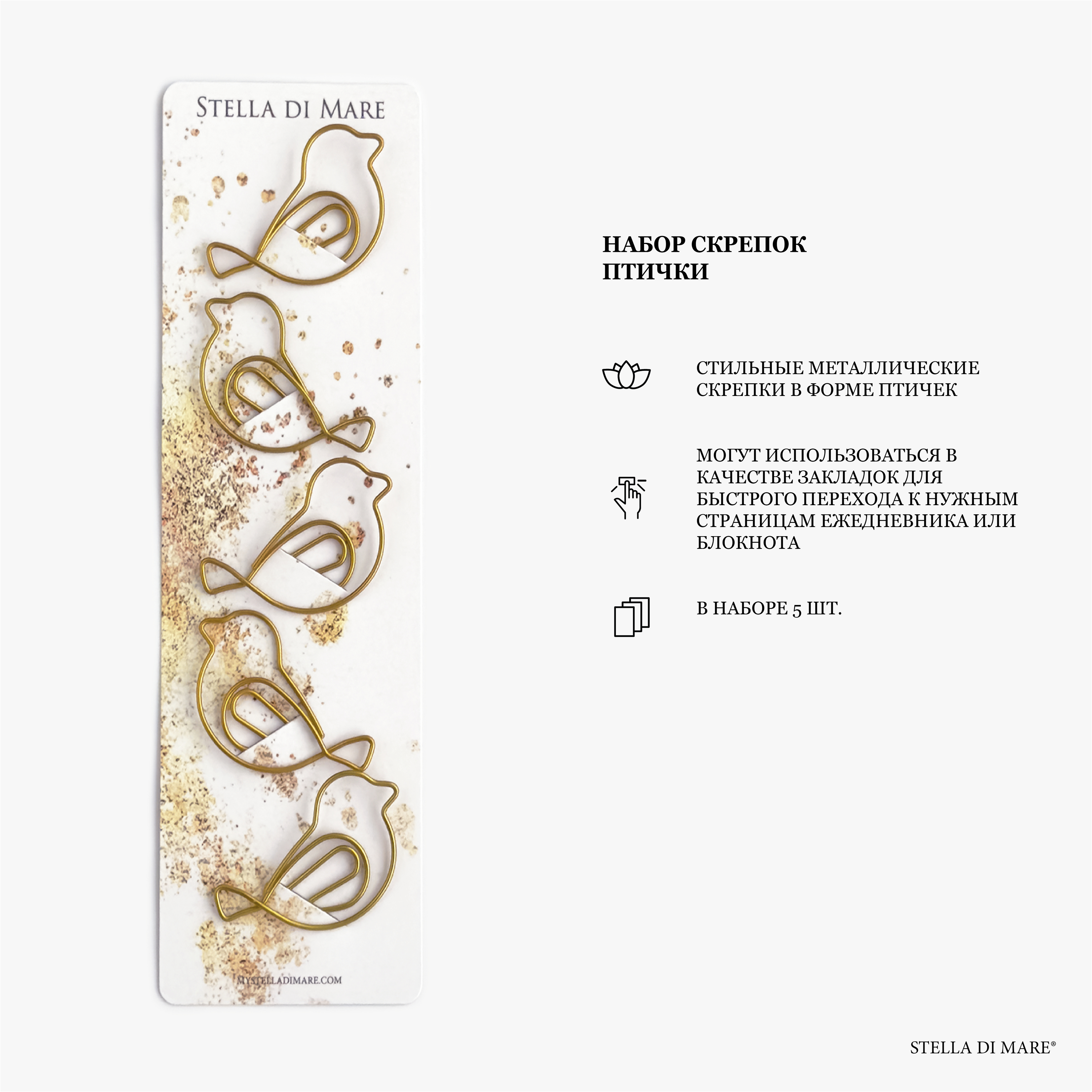 Набор скрепок Птички. В наборе 5 шт.