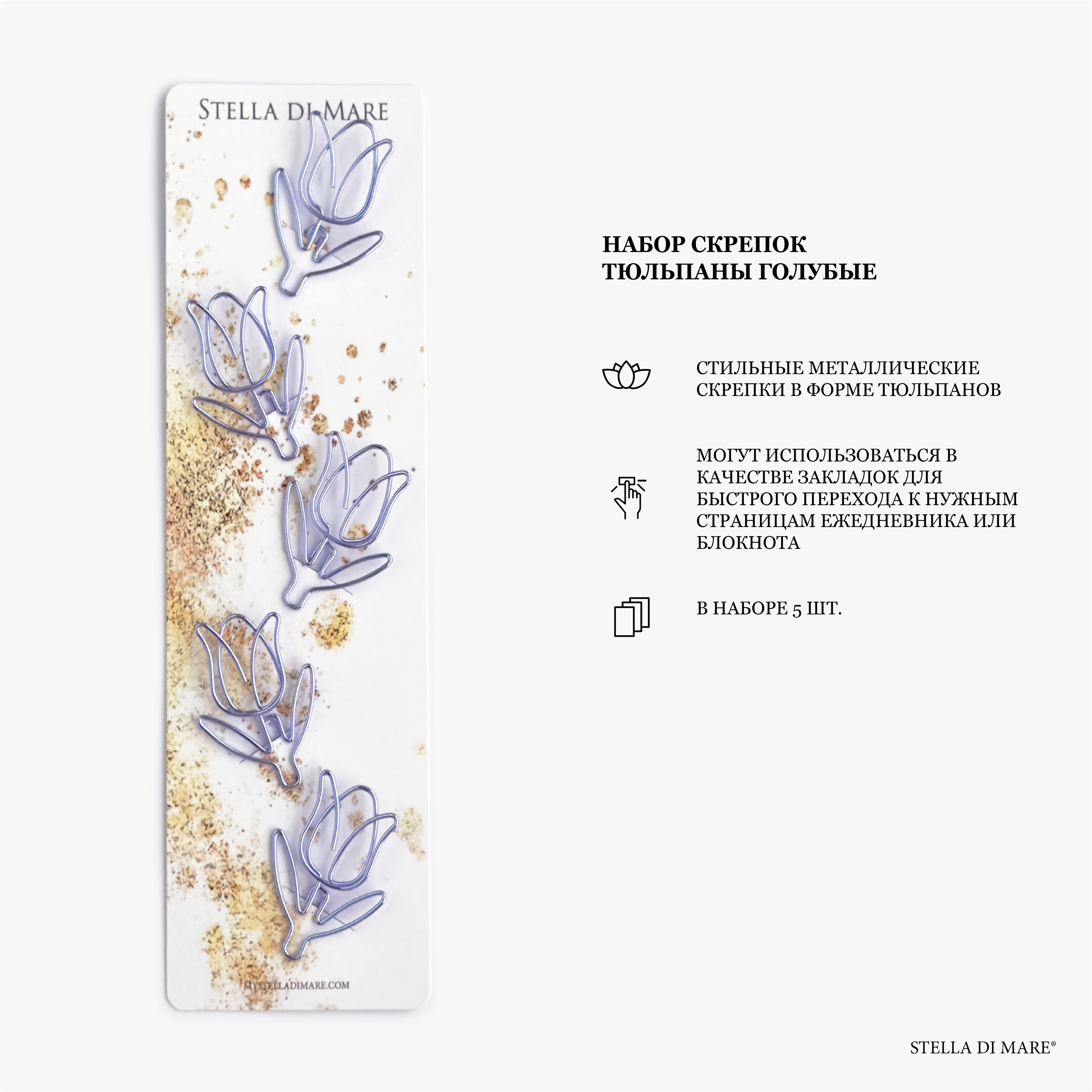 Набор скрепок Тюльпаны Голубые. В наборе 5 шт.