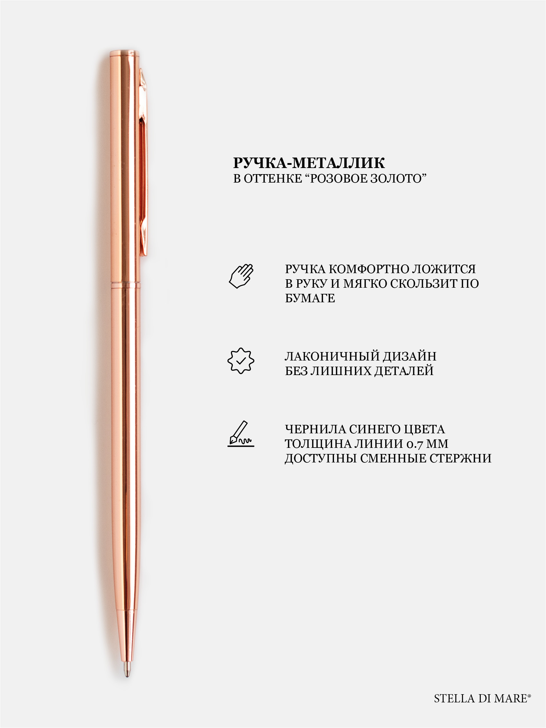 - Ручка Металлик в оттенке Розовое золото, чернила синие.