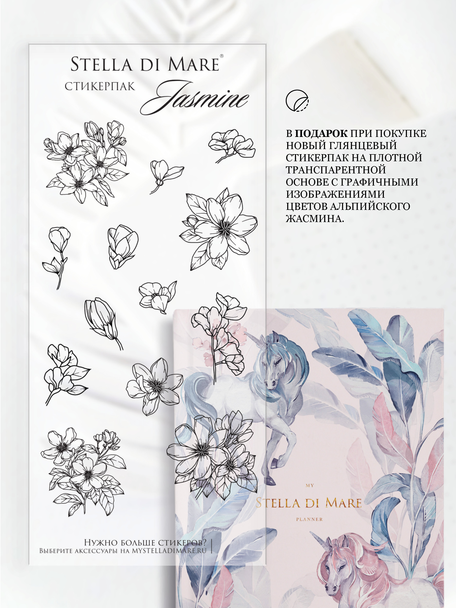 - Новый стикерпак Jasmine на транспарентной основе с графичными изображениями горного жасмина.