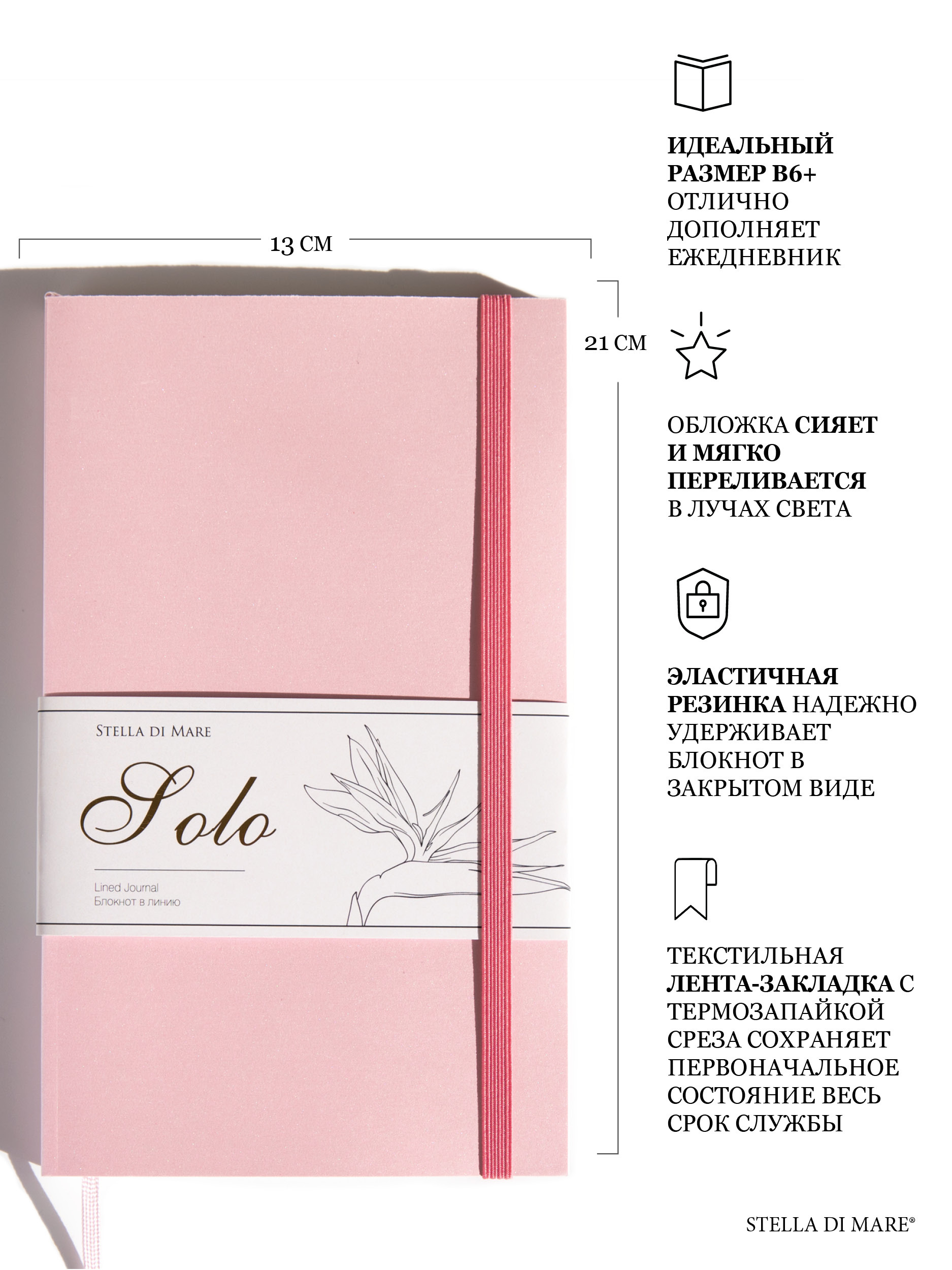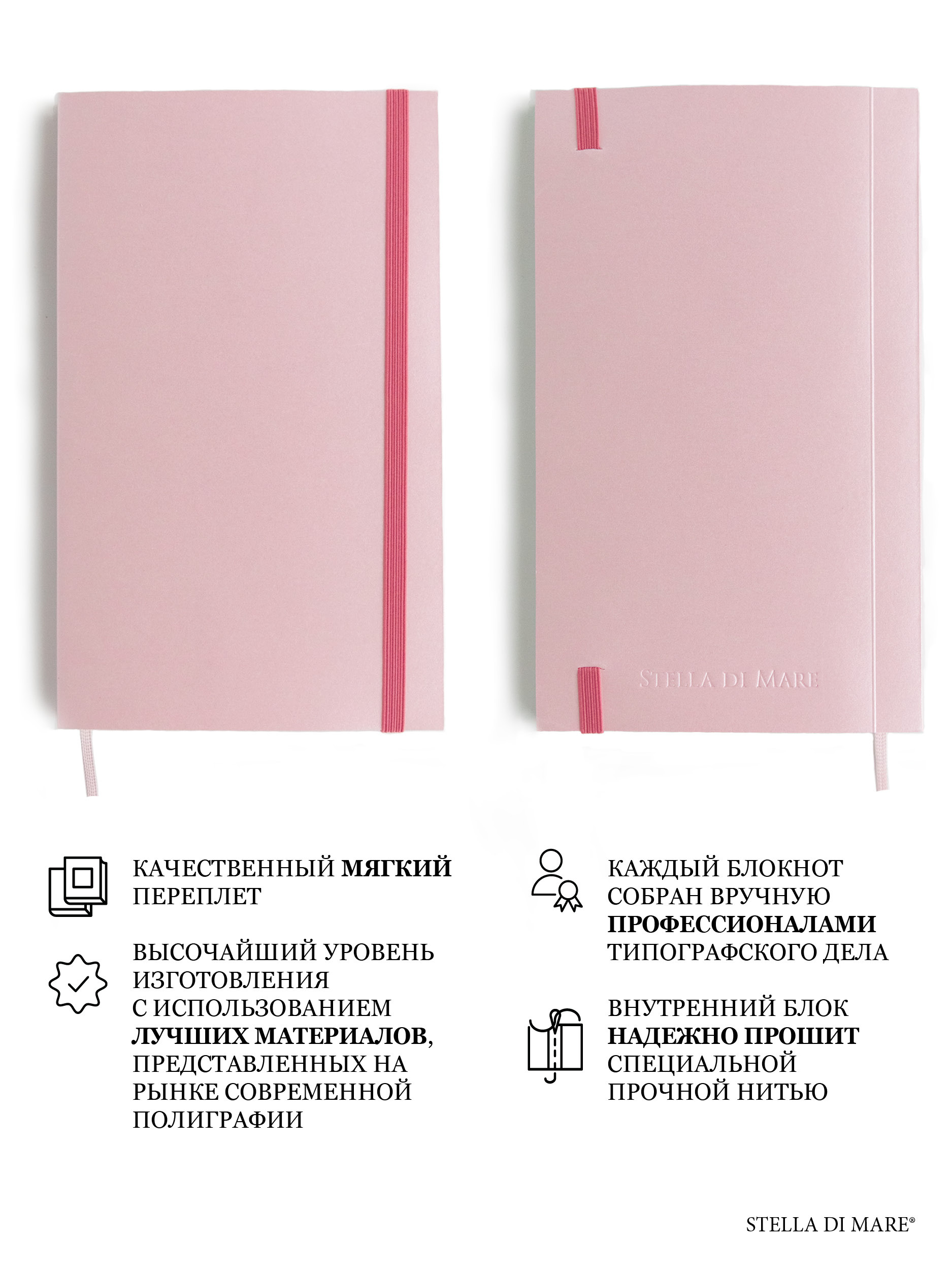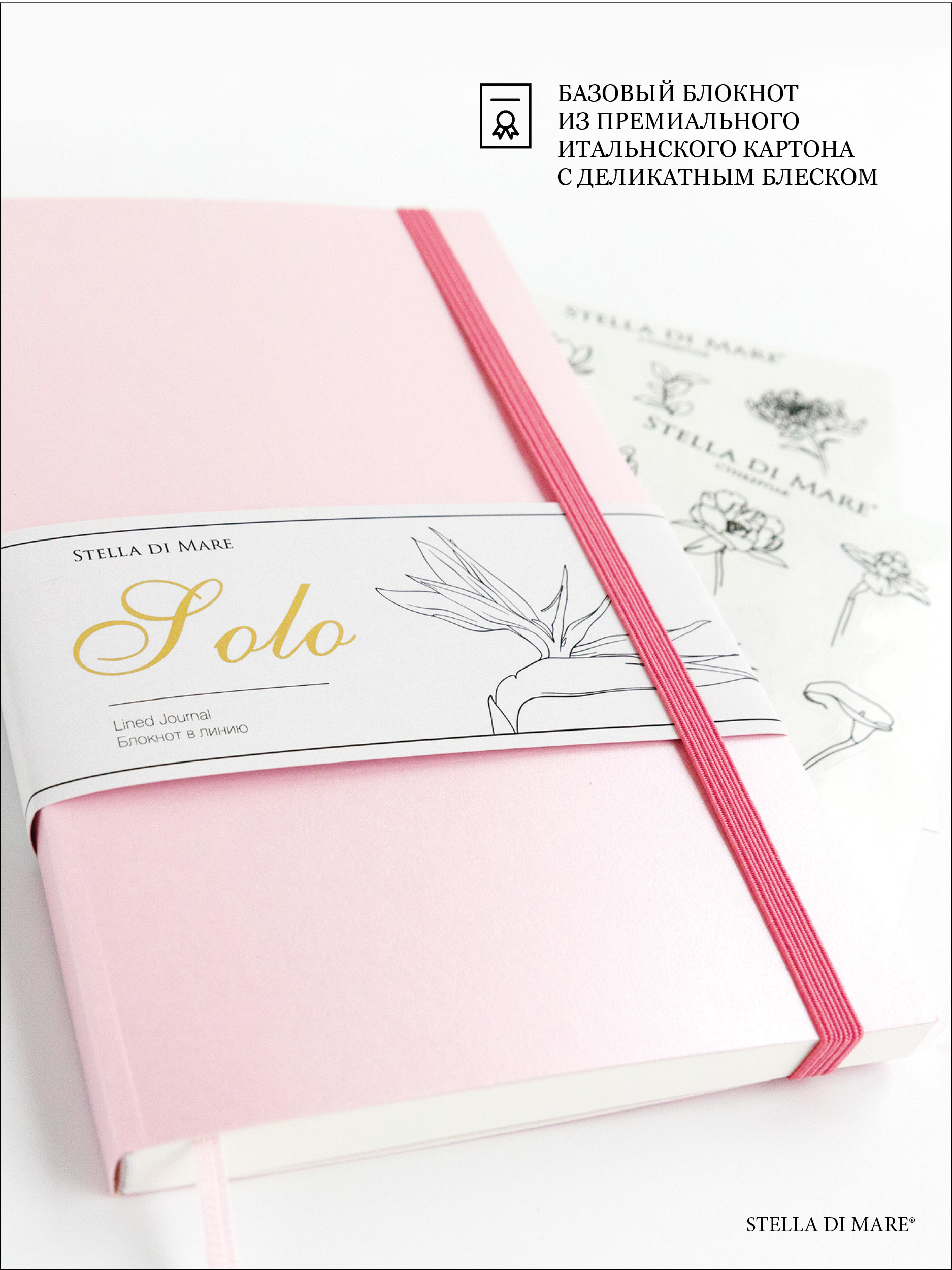 - Сверкающий блокнот из итальянского картона Solo Pink Cloud, внутренний блок в точку.