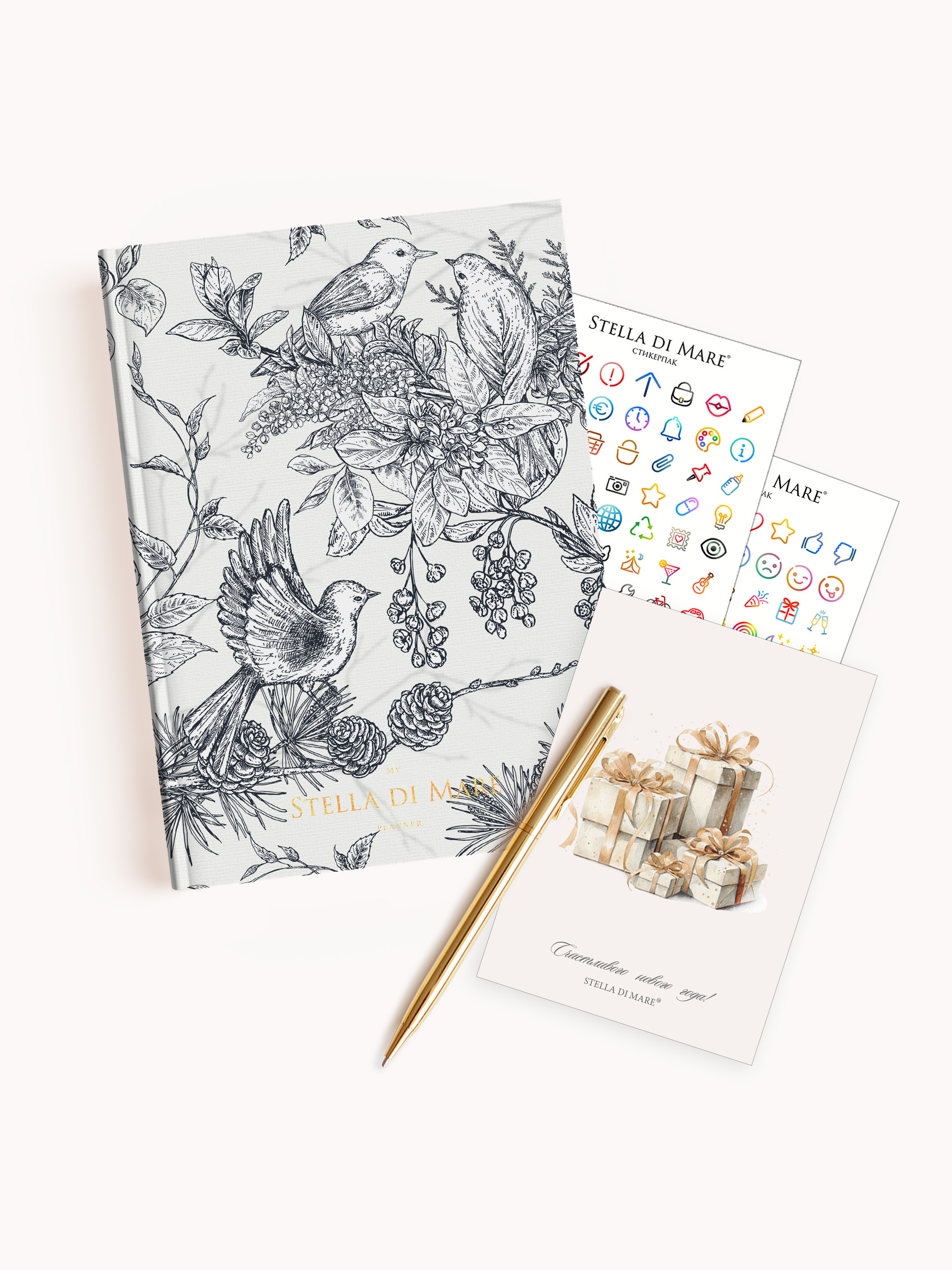 - Полноцветный стикерпак на плотной глянцевой основе - более 130 ярких наклеек для выделения важных событий и украшения ежедневника.