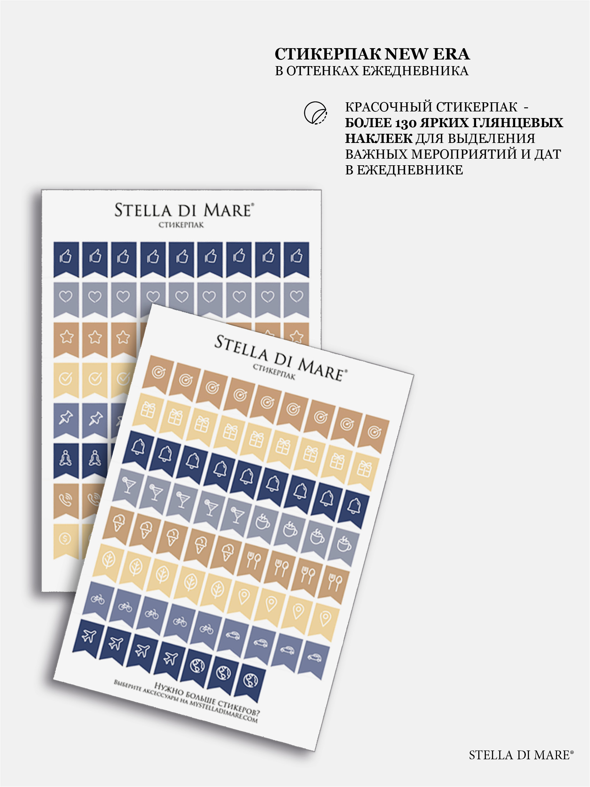 - Полноцветный стикерпак New Era на плотной глянцевой основе, созвучный оттенкам ежедневника